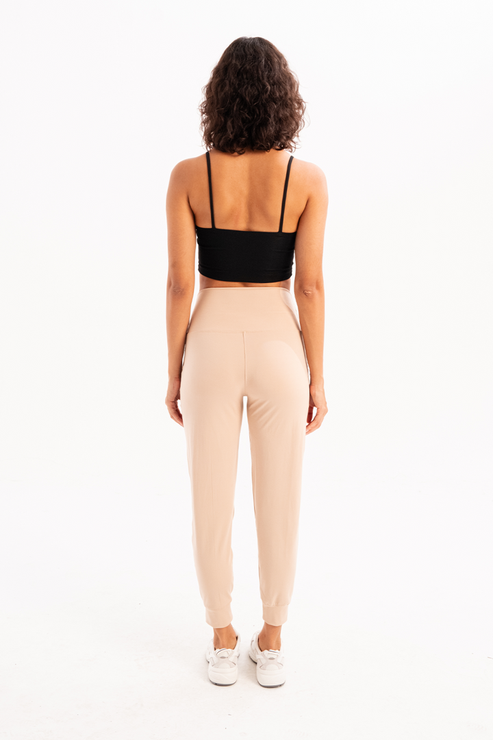 JUSTEVER High Waist Elastic Pocket Relaxed Cut Jogger Beige Women's Tracksuit Bottoms - Beat
