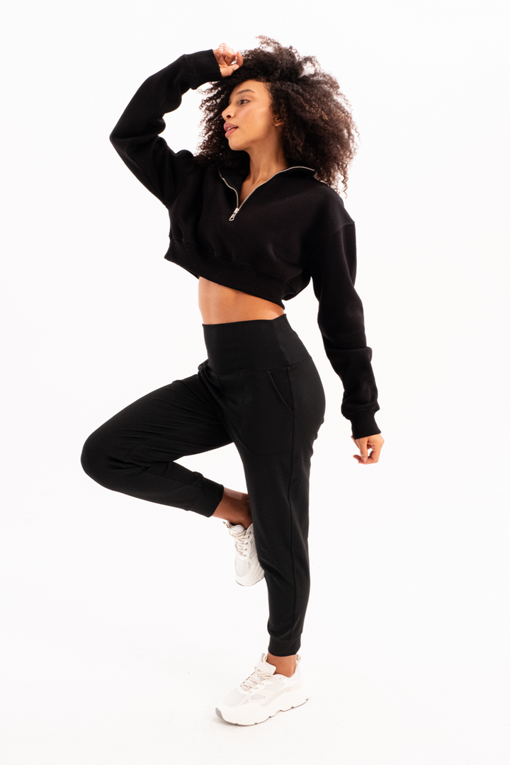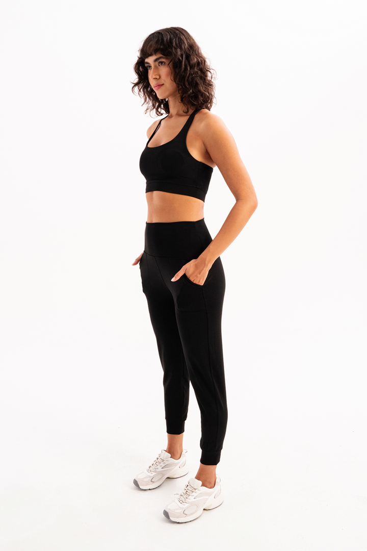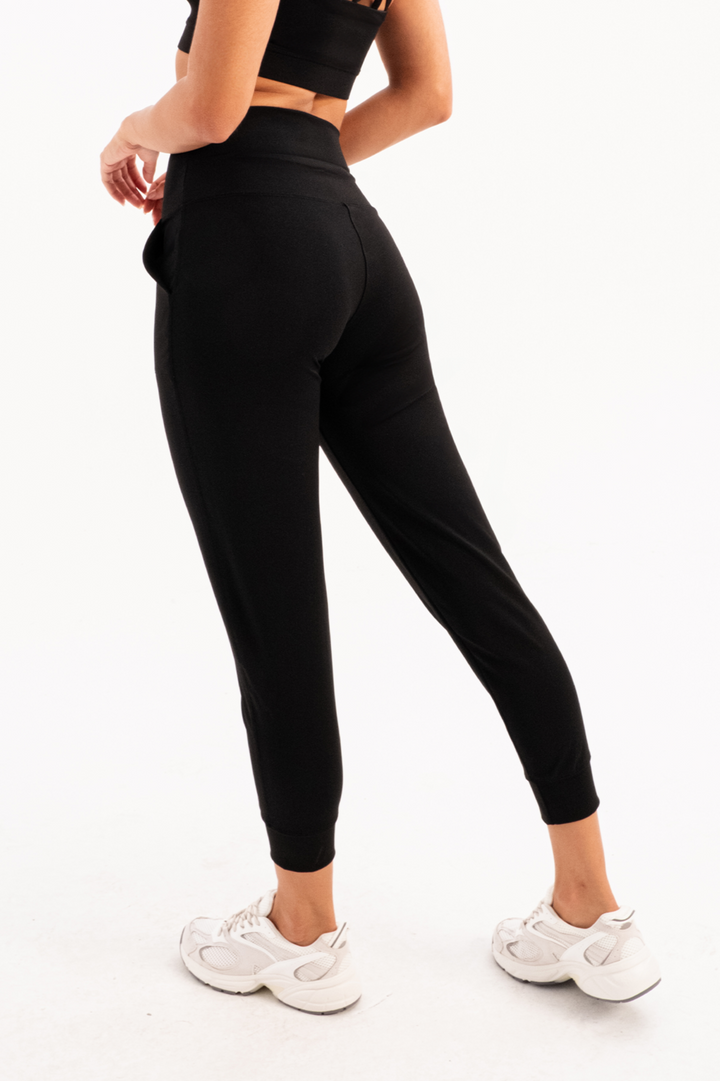 JUSTEVER High Waist Elastic Pocket Relaxed Cut Jogger Black Women's Tracksuit Bottoms - Beat