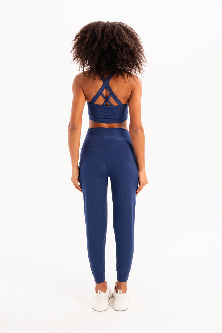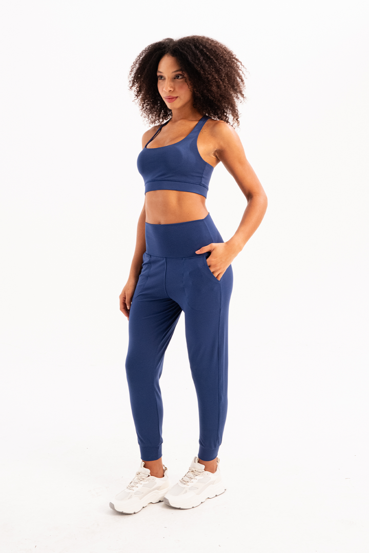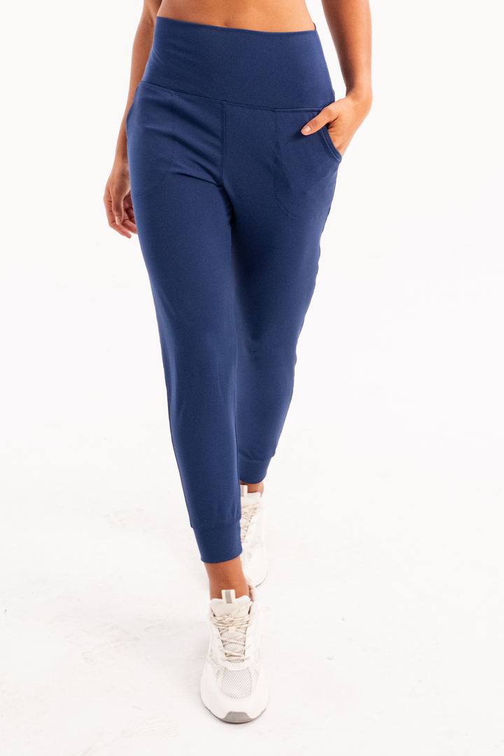 JUSTEVER High Waist Elastic Pocket Relaxed Cut Slimming Jogger Navy Blue Women's Sweatpants - Beat