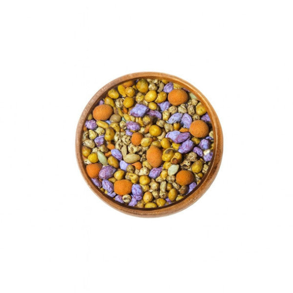 • A special mix of salted peanuts, sauced corn, peanut chips and crispy roasted chickpeas
