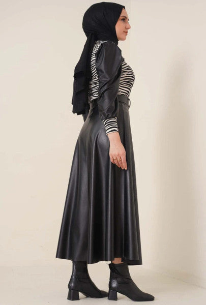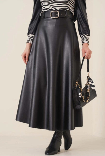 وصلت لك تنورة موديل الموسم الجديد بمظهرها الرائع. تنورتنا لها نموذج جرس وهيكل جلدي. لديها حزام. أنها مريحة للغاية. يمكنك دمجها بسهولة مع أي من ملابسك. متوفر بألوان مختلفة.