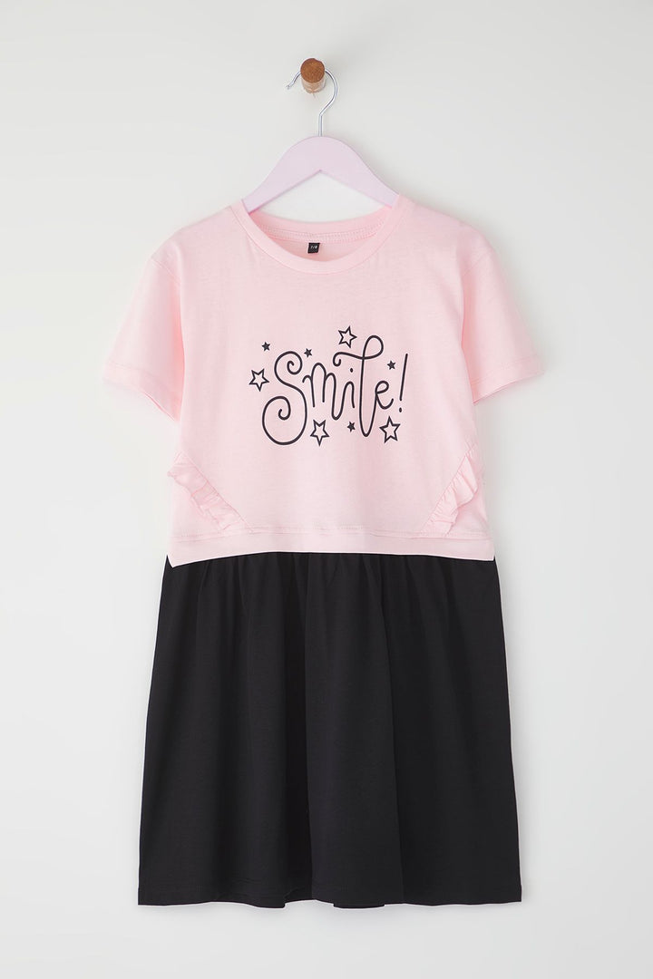 kıds Girls Pink Printed Mini Short Casual/daily Regular Dress