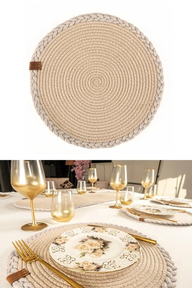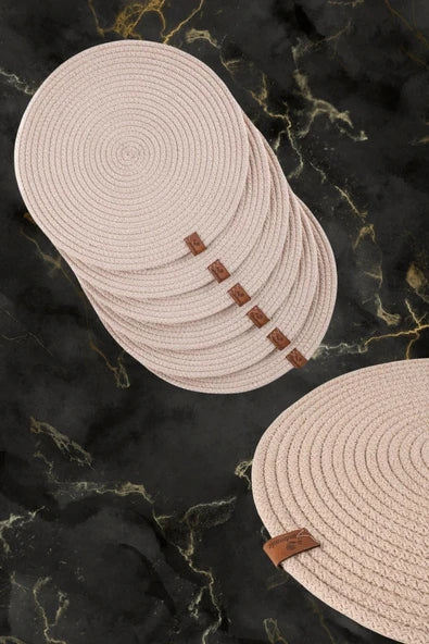 Vos Versa American Service Set of 6 Lux Serving Plate Coasters - Round Beige VVHM0040