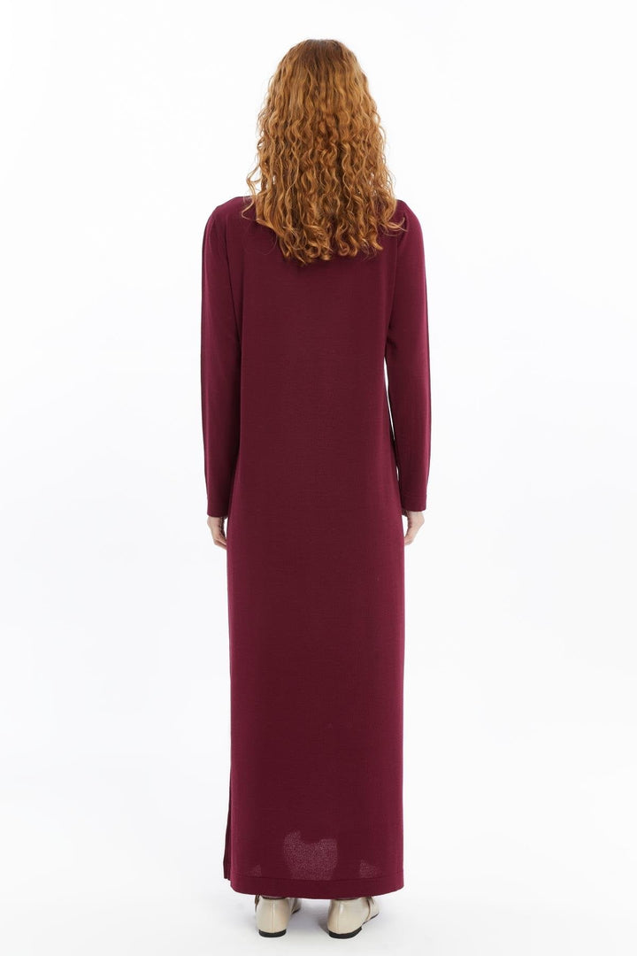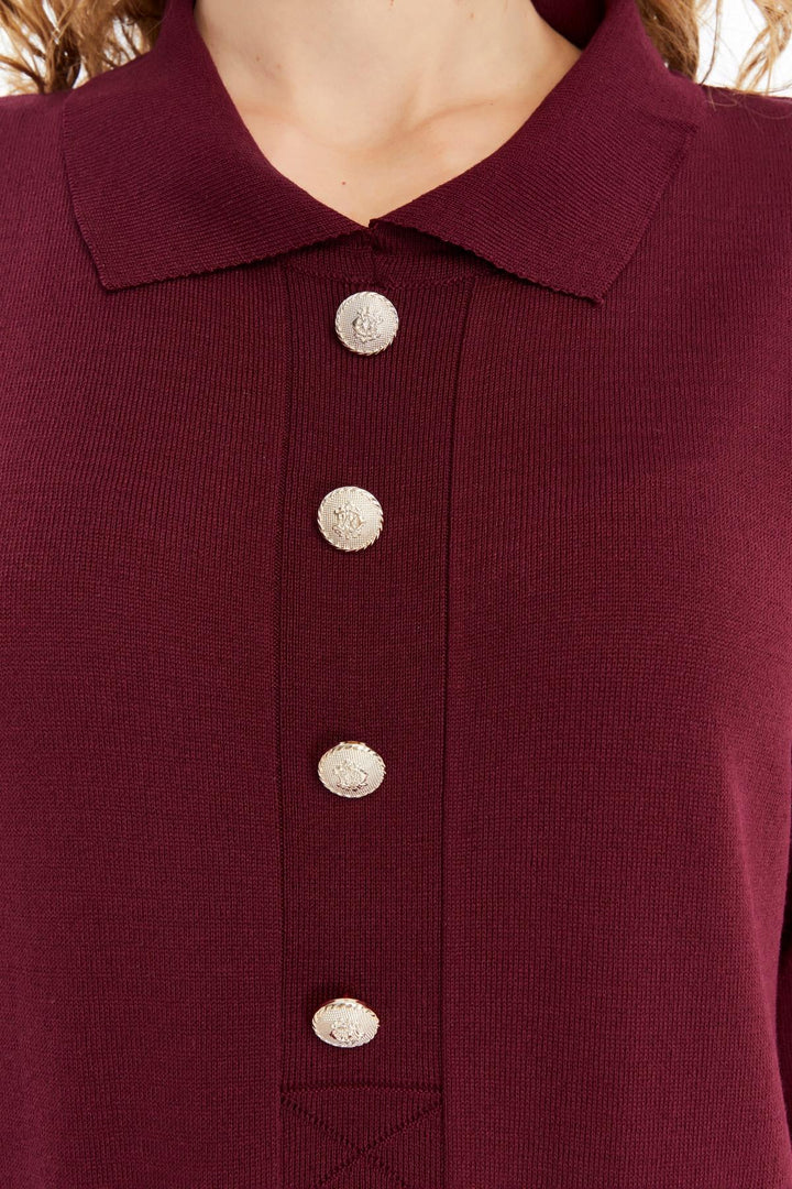 25006 Women's Shirt Collar Detailed Half Placket Thin Seasonal Cold Yarn Knitwear Dress Burgundy