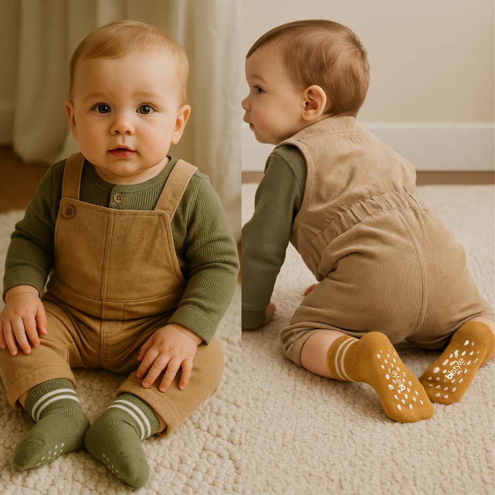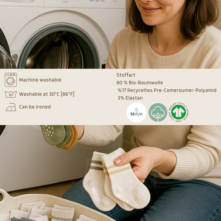 PREMIUM QUALITY – Bistyle baby ankle socks are made from 100% organic cotton, providing softness, breathability, and all-day comfort for your baby’s delicate skin. The high-quality fabric is durable, non-irritating, and machine washable without losing color or shape. MADE IN TÜRKİYE. ANTI-SLIP SAFETY – Each pair features non-slip grips on the sole to help prevent slips and falls, making them perfect for crawling, walking, or playing. Designed for active little feet that are always on the move. COMFORTABLE FIT – These ankle-length socks have a stretchy ribbed cuff that keeps them in place without being too tight. Suitable for newborns, infants, and toddlers, offering a snug yet gentle fit that won’t leave marks. VERSATILE STYLE – With a variety of cute and colorful designs, these socks are great for both boys and girls. Perfect to pair with sneakers, casual outfits, or home wear — ideal for every season.
