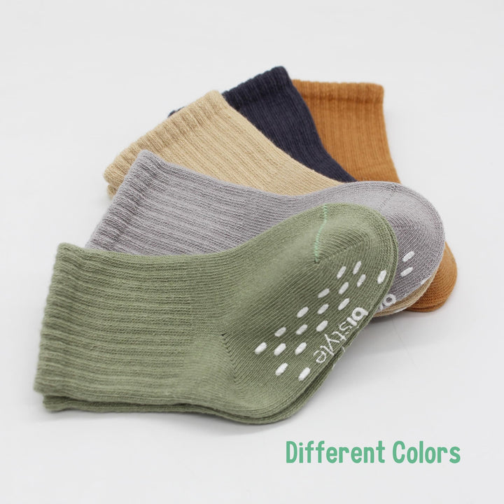 Bistyle Baby Grip Ankle Socks 5 Pairs | Newborn Infant Toddlers Non-Slip Socks Organic Cotton | Kids Boys Girls Ankle