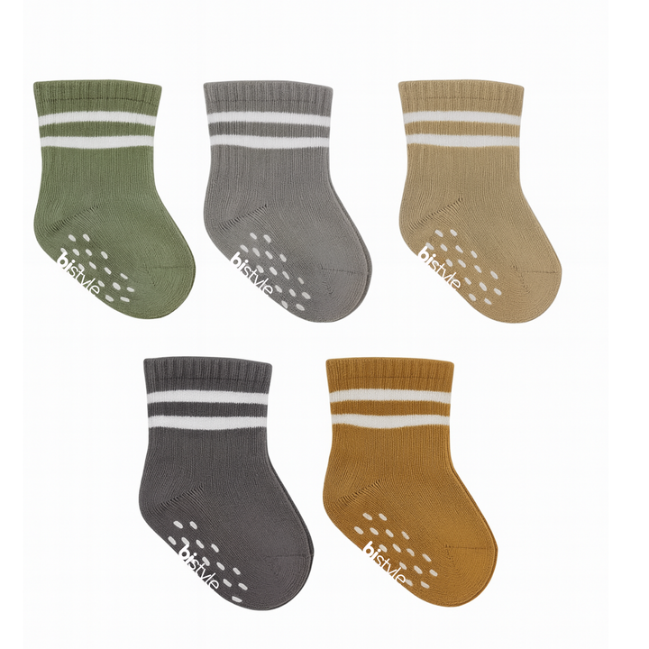 Bistyle Baby Grip Ankle Socks 5 Pairs | Newborn Infant Toddlers Non-Slip Socks Organic Cotton | Kids Boys Girls Ankle