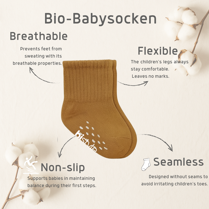 PREMIUM QUALITY – Bistyle baby ankle socks are made from 100% organic cotton, providing softness, breathability, and all-day comfort for your baby’s delicate skin. The high-quality fabric is durable, non-irritating, and machine washable without losing color or shape. MADE IN TÜRKİYE. ANTI-SLIP SAFETY – Each pair features non-slip grips on the sole to help prevent slips and falls, making them perfect for crawling, walking, or playing. Designed for active little feet that are always on the move. COMFORTABLE FIT – These ankle-length socks have a stretchy ribbed cuff that keeps them in place without being too tight. Suitable for newborns, infants, and toddlers, offering a snug yet gentle fit that won’t leave marks. VERSATILE STYLE – With a variety of cute and colorful designs, these socks are great for both boys and girls. Perfect to pair with sneakers, casual outfits, or home wear — ideal for every season.