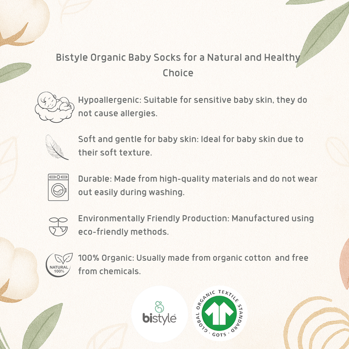 PREMIUM QUALITY – Bistyle baby ankle socks are made from 100% organic cotton, providing softness, breathability, and all-day comfort for your baby’s delicate skin. The high-quality fabric is durable, non-irritating, and machine washable without losing color or shape. MADE IN TÜRKİYE. ANTI-SLIP SAFETY – Each pair features non-slip grips on the sole to help prevent slips and falls, making them perfect for crawling, walking, or playing. Designed for active little feet that are always on the move. COMFORTABLE FIT – These ankle-length socks have a stretchy ribbed cuff that keeps them in place without being too tight. Suitable for newborns, infants, and toddlers, offering a snug yet gentle fit that won’t leave marks. VERSATILE STYLE – With a variety of cute and colorful designs, these socks are great for both boys and girls. Perfect to pair with sneakers, casual outfits, or home wear — ideal for every season.