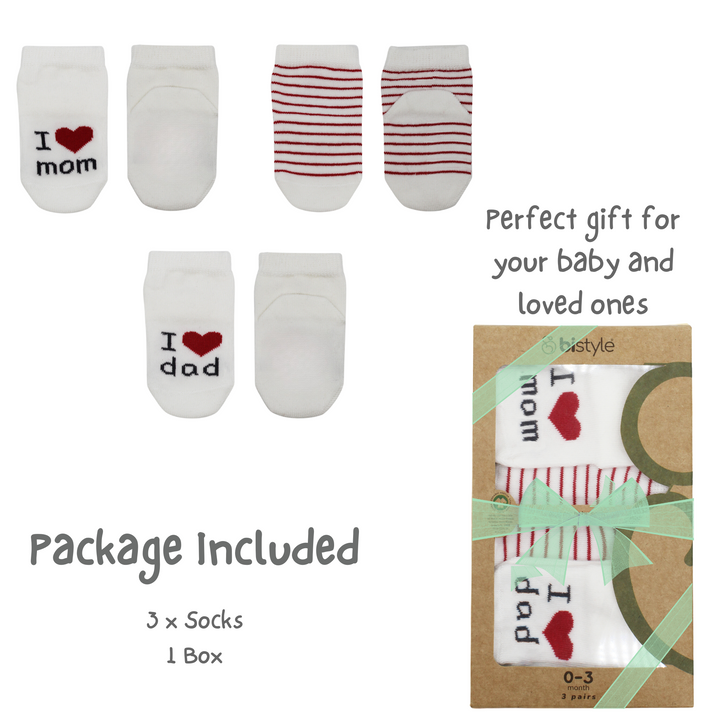 Bistyle Baby Sock 0-3 Month, Organic Cotton Baby Socks 0-3 Month Sock With Saying I Love You Dad & Mom Newborn