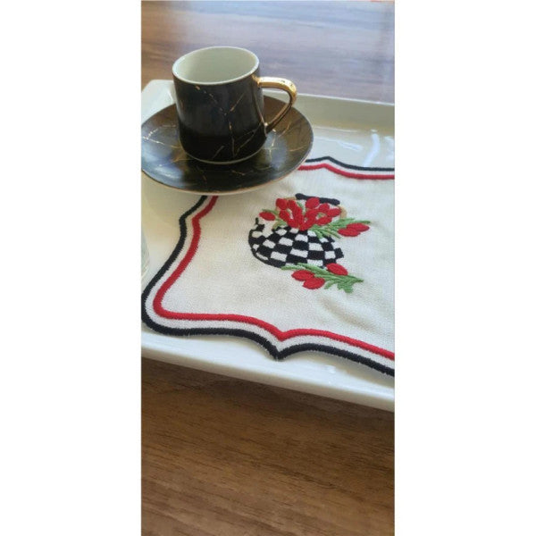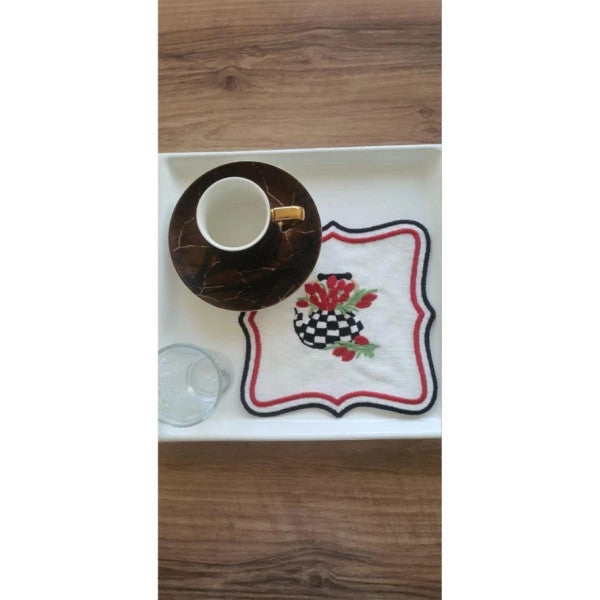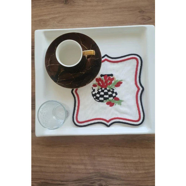 Çaycım Embroidered Linen Square Coaster Set adds elegance to your tables with its elegant design and quality workmanship. This set of 6 square pieces, each measuring 15x15 cm, is adorned with embroidery on linen fabric. It offers both aesthetic and functional use when serving your coffee, tea or other beverages. These coasters, which you can use especially when presenting to your guests or on special occasions, will add an elegant touch to your tables.