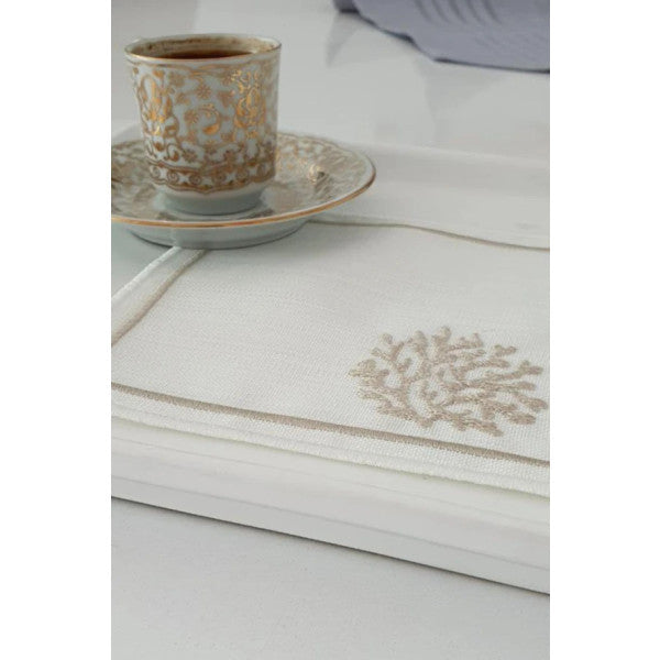 Bringing the elegance of winter to your tables, this set of 6 square coasters draws attention with their snowflake embroidery details. While creating a warm atmosphere with brown tones, the natural texture and durability of the linen fabric offers long-lasting use.