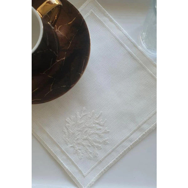 Snowflake Embroidered Square Coaster Set completes the elegance of your home with its cream color and elegant snowflake motifs. It is an indispensable product for your guest tables. It provides long-term use thanks to its durable structure. It is ideal for those who want to add an aesthetic touch when presenting to their guests. The set consists of 6 square coasters. It is easy to clean and store. It brings elegance to your tables with its stylish and functional design.