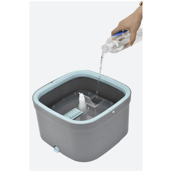With centrifugal force, the water in the mop is poured into the dirty water tank and the mop dries.