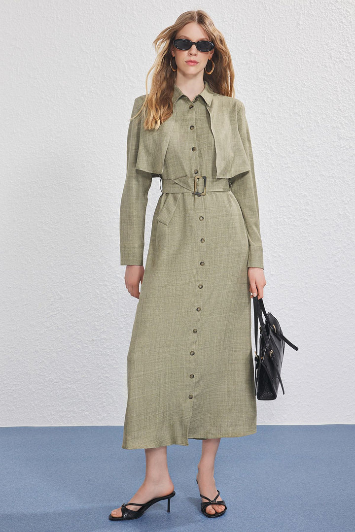 Material Composition: 100% Polyester Fabric type: woven; model front length: 137.0 cm ;In order to use your product for a longer period of time and to properly care for your product, please follow the washing instructions below. ;It is unlined, it is recommended to wear it with a lining. Colors in studio shots may vary due to light differences.
