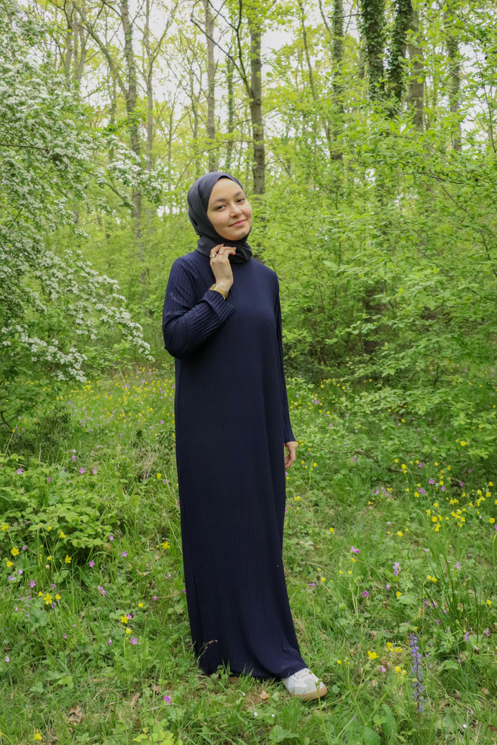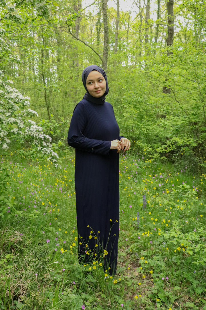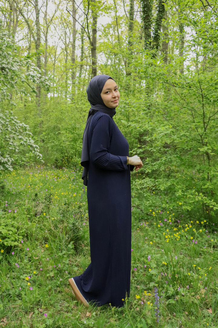 25013 Women's Pleated Sandy Maxi Length Rescue Dress Navy Blue
