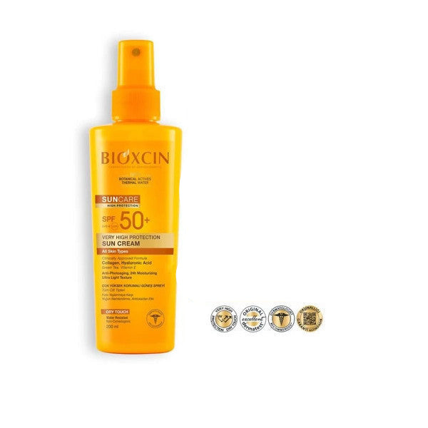 bioxcin sun care spf50, bioxcin 50ml, spf50 oily skin sunscreen, bioxcin vücut spreyi 200ml, high protection sun duo, matte finish spf50 face body
