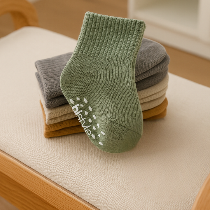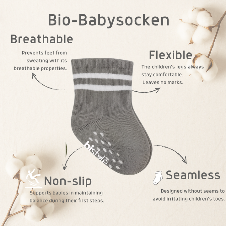PREMIUM QUALITY – Bistyle baby ankle socks are made from 100% organic cotton, providing softness, breathability, and all-day comfort for your baby’s delicate skin. The high-quality fabric is durable, non-irritating, and machine washable without losing color or shape. MADE IN TÜRKİYE. ANTI-SLIP SAFETY – Each pair features non-slip grips on the sole to help prevent slips and falls, making them perfect for crawling, walking, or playing. Designed for active little feet that are always on the move. COMFORTABLE FIT – These ankle-length socks have a stretchy ribbed cuff that keeps them in place without being too tight. Suitable for newborns, infants, and toddlers, offering a snug yet gentle fit that won’t leave marks. VERSATILE STYLE – With a variety of cute and colorful designs, these socks are great for both boys and girls. Perfect to pair with sneakers, casual outfits, or home wear — ideal for every season.