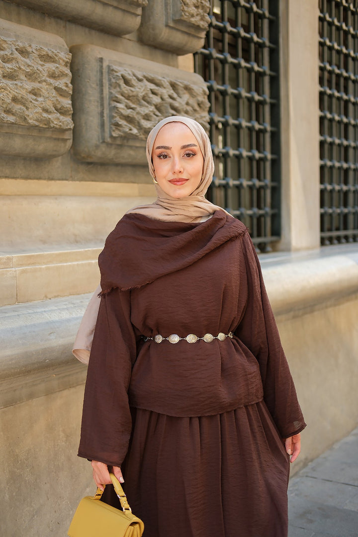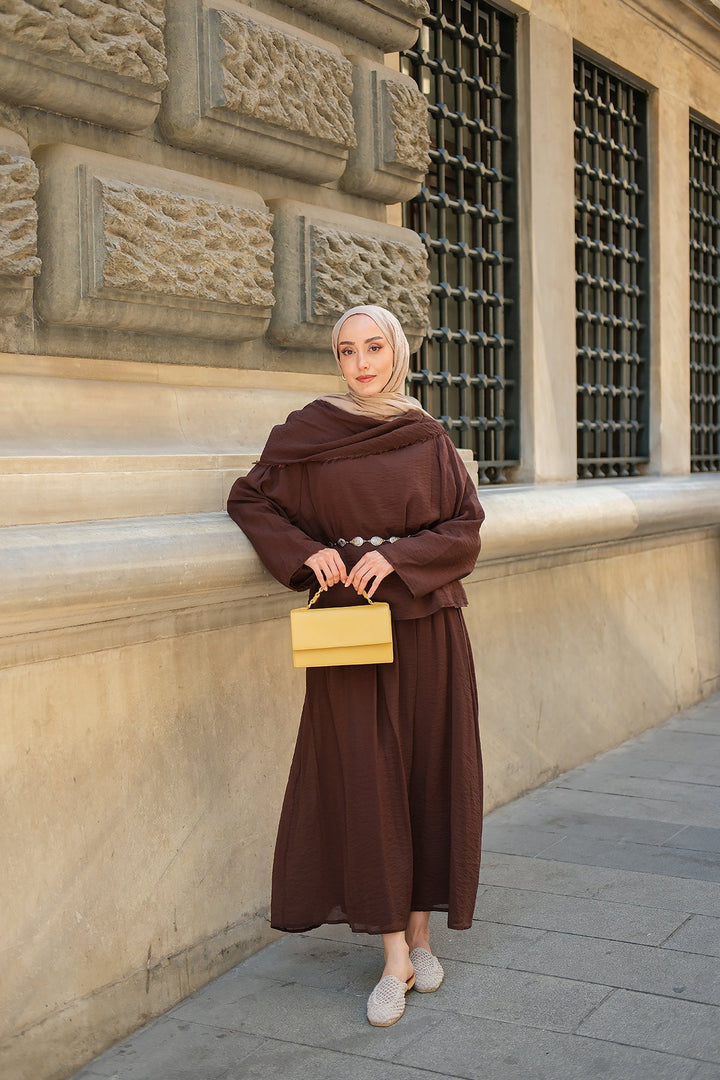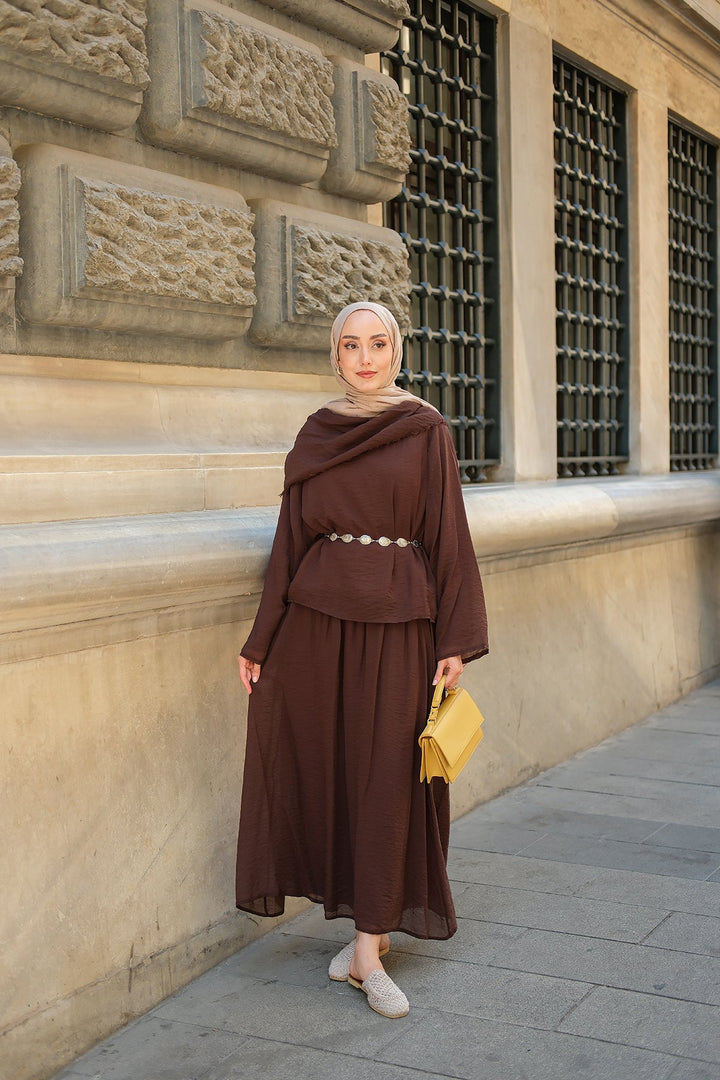 Brown Tencel Set With Shawl Collar