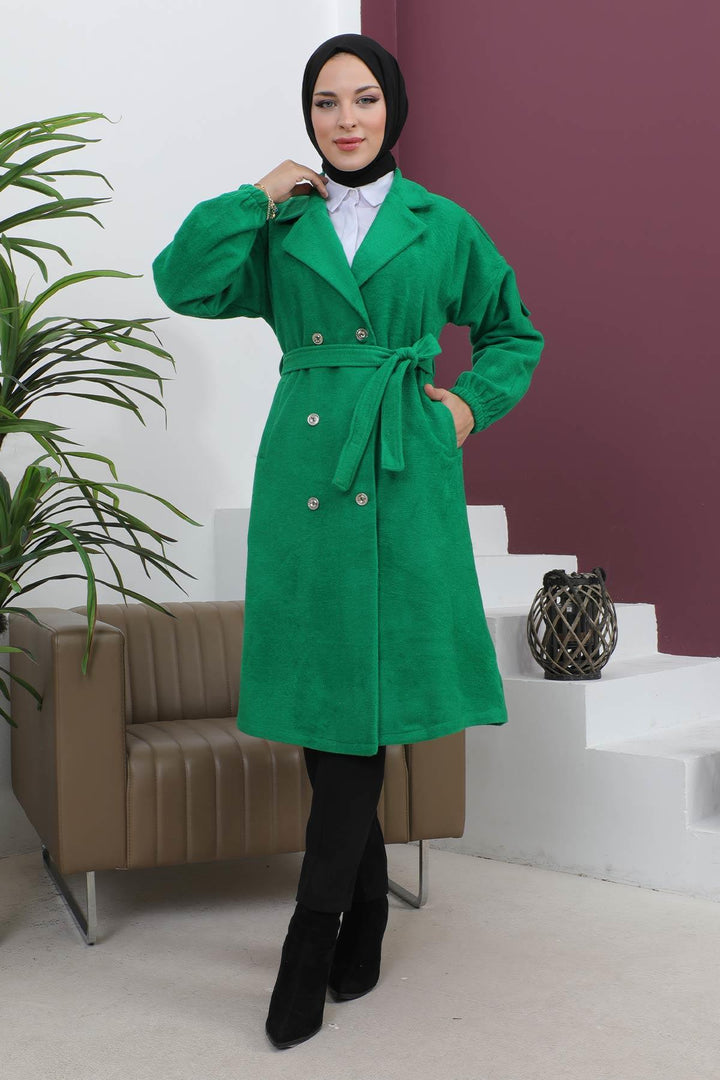 Button Detailed Cashmere Coat Emerald Msw19247-3