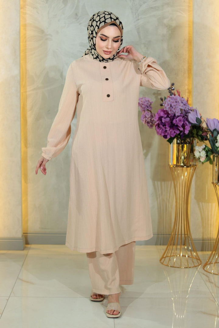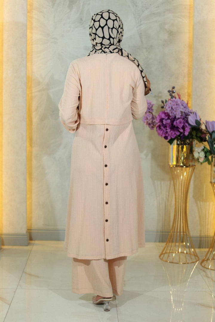Buttoned Hijab Suit Beige Msw10358-3