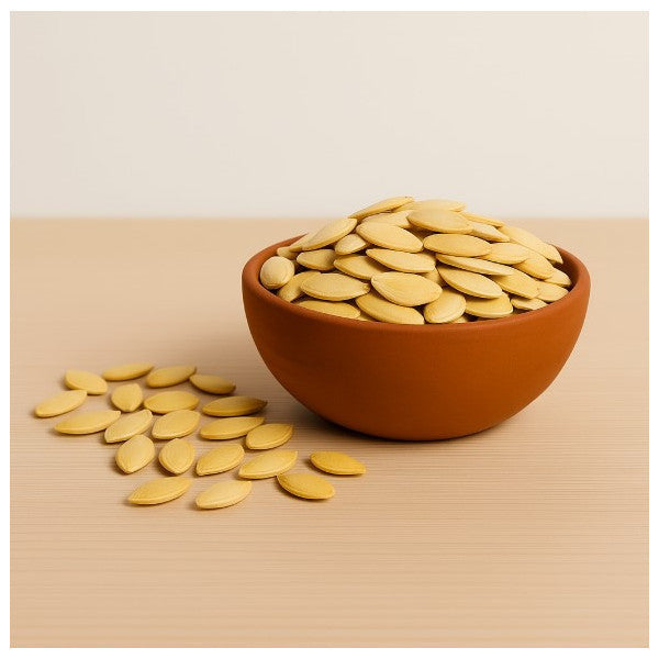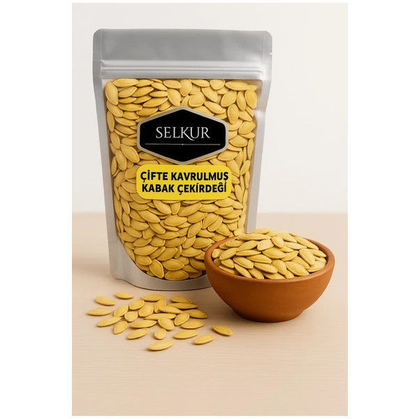 Double-roasted pumpkin seeds, roasted in their shells and processed through a two-stage process, are a snack with an intense flavor and distinct crunch. This special roasting technique creates a crispy outer shell while preserving the natural oils inside, enhancing their distinctive flavor. Their color can range from light brown to golden hues, and each seed is evenly roasted.