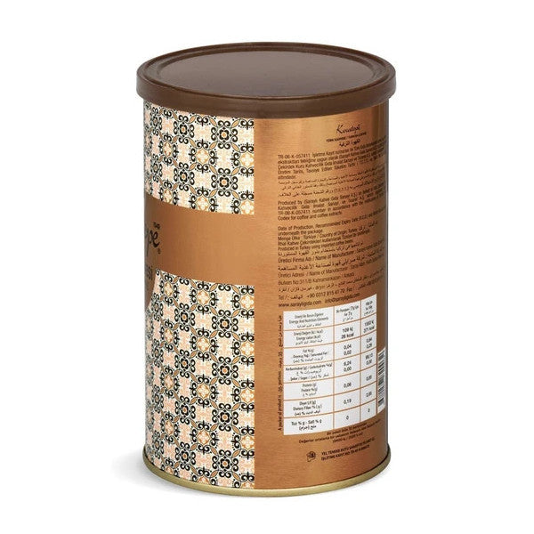 Kocatepe Turkish Coffee offers superior quality for Turkish coffee lovers with its 250 gram tin packaging. Obtained by carefully selecting the highest quality 100% Arabica coffee beans from the Colombia and Rio Minas regions and roasting them with natural methods, this coffee is finely ground in traditional stone mills. Thanks to its medium roasted structure and fine grinding, it offers a full Turkish coffee experience with both its aroma and flavor.