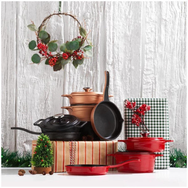 Schafer Pro Cast Mini Cast Iron Cookware Set 5 Pieces - Red