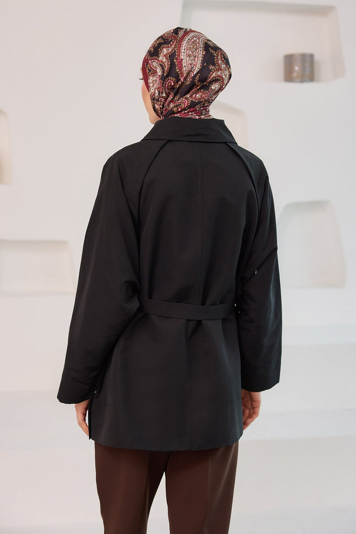 Sides Openable Snap Button Detail Short Trench Coat Black