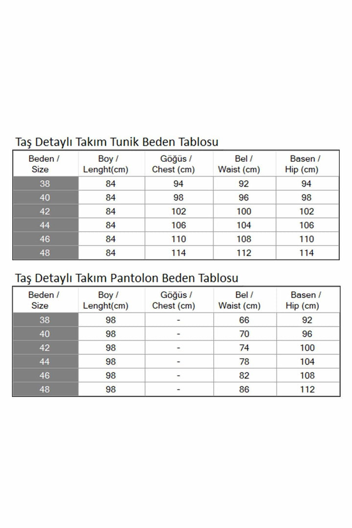 Fabric Feature: Made of combed linen fabric. Product Feature: New season hijab fashion product. Unlined. Tunic has a usable half zipper on the back. Shoulders have stone detail. Belt is removable. Trousers have an elastic waist. Product color may vary due to concept shots. The model is wearing a size 38. Size Chart is in the pictures.
