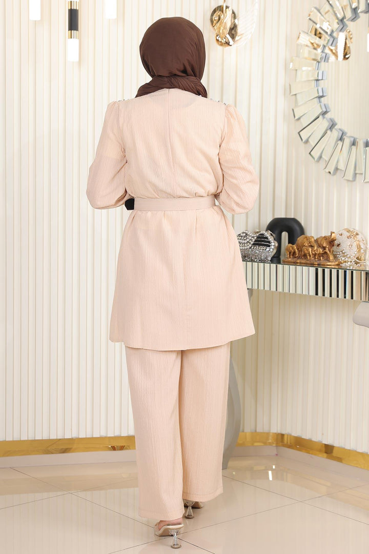 Reviews for "Stone Detailed Belted Suit Beige Msw19104-2"