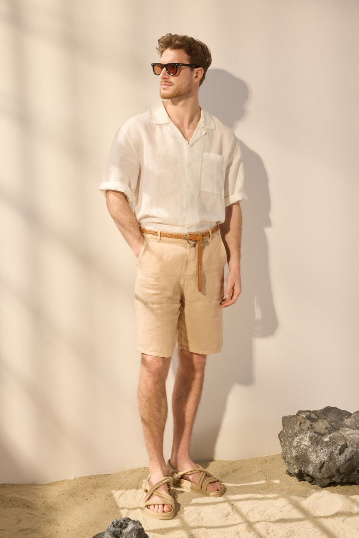 Man Men's Beige Straight Regular Normal Waist Shorts & Bermudas