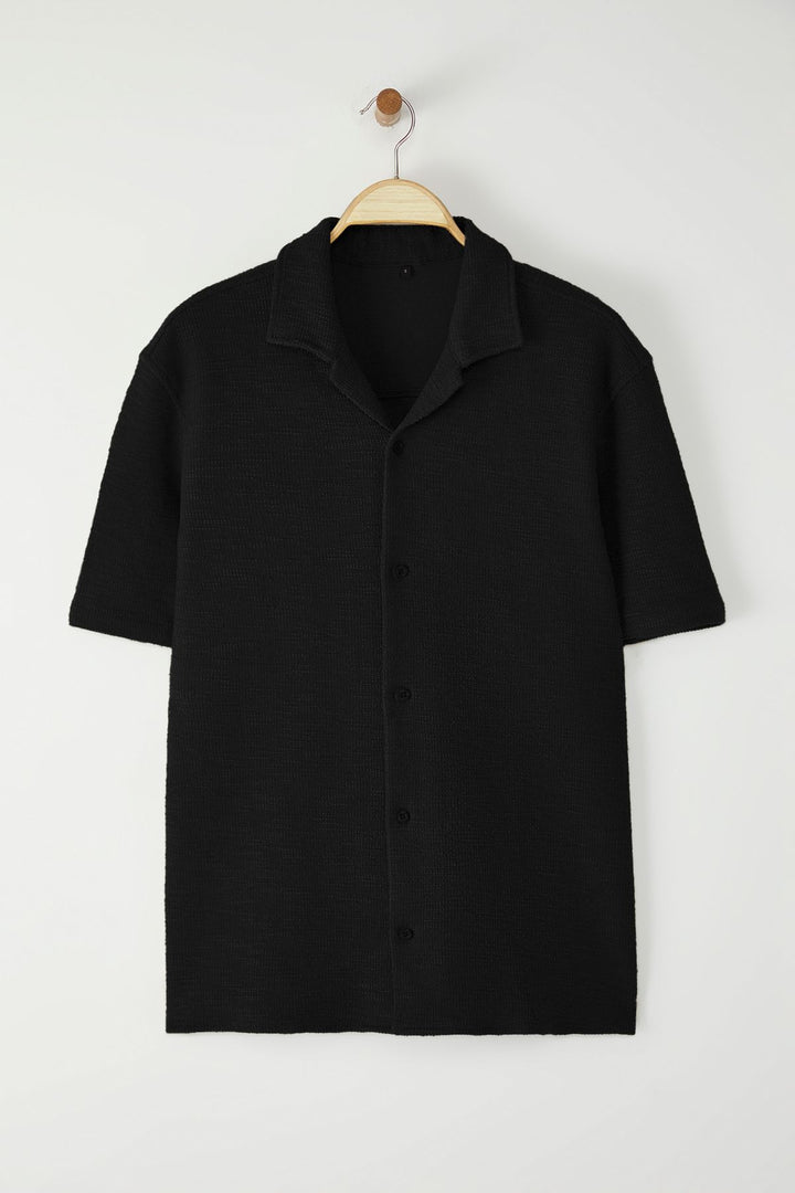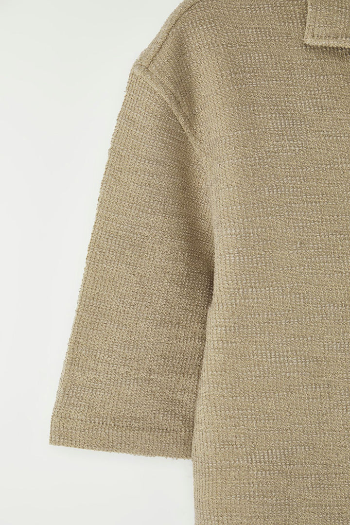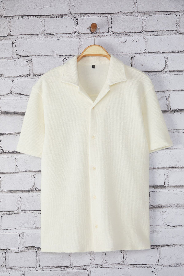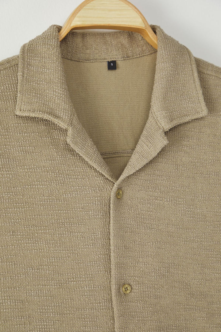 Man Men's Beige Textured Short Regular Shirt