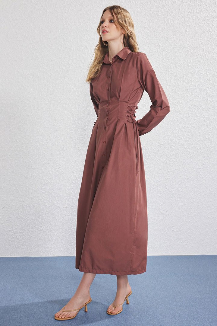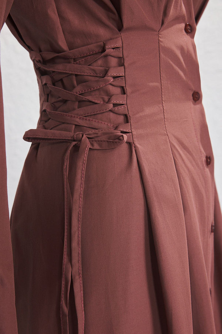 Material Composition: 50% Cotton,50% Polyester Fabric type: woven; model front length: 137.0 cm In order to use your product for a longer time and provide proper care for your product, please follow the washing instructions provided below. It is unlined, it is recommended to wear it with a lining. Colors in studio shots may vary due to light differences.