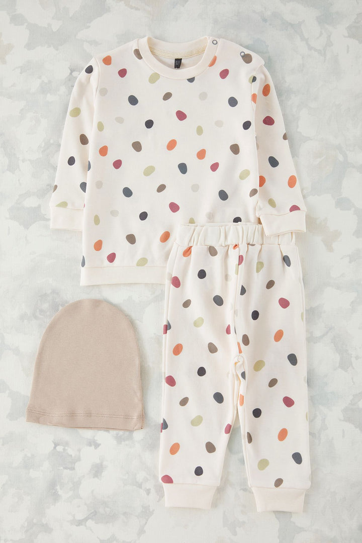 kıds Unisex Ecru Spotted Long Casual/daily Regular Two Piece Sets