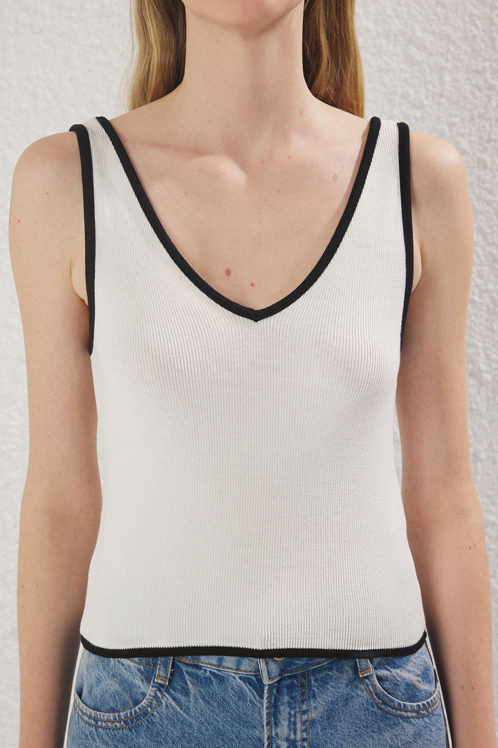 Women's Ecru Color Blocked Sleeveless Slim Blouse