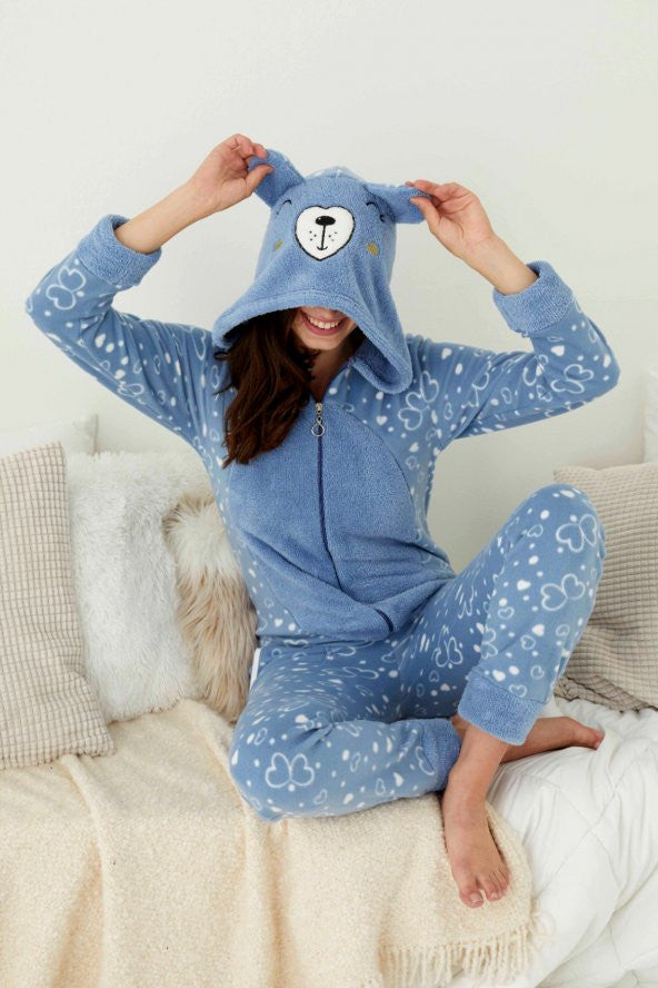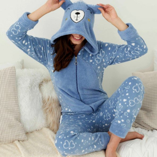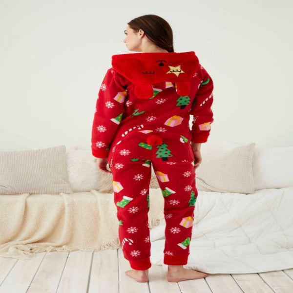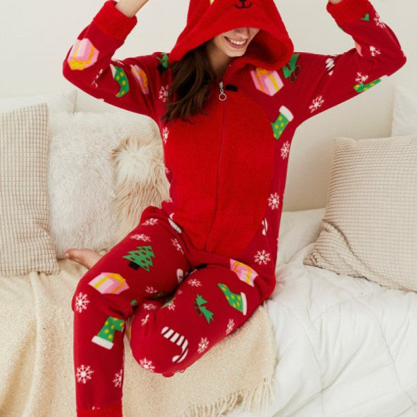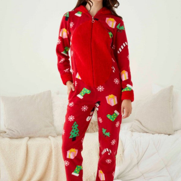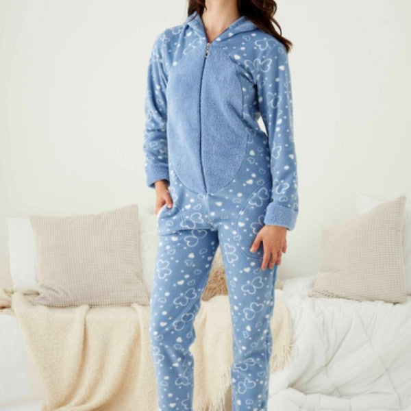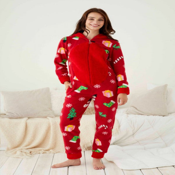 Winter Women's Jumpsuit Pajamas - Plush Winter Pajamas - Valentine's Day