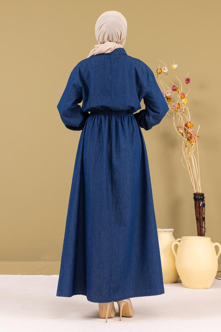 Zippered Elastic Waist Denim Dress Dark Blue Msw19240-2